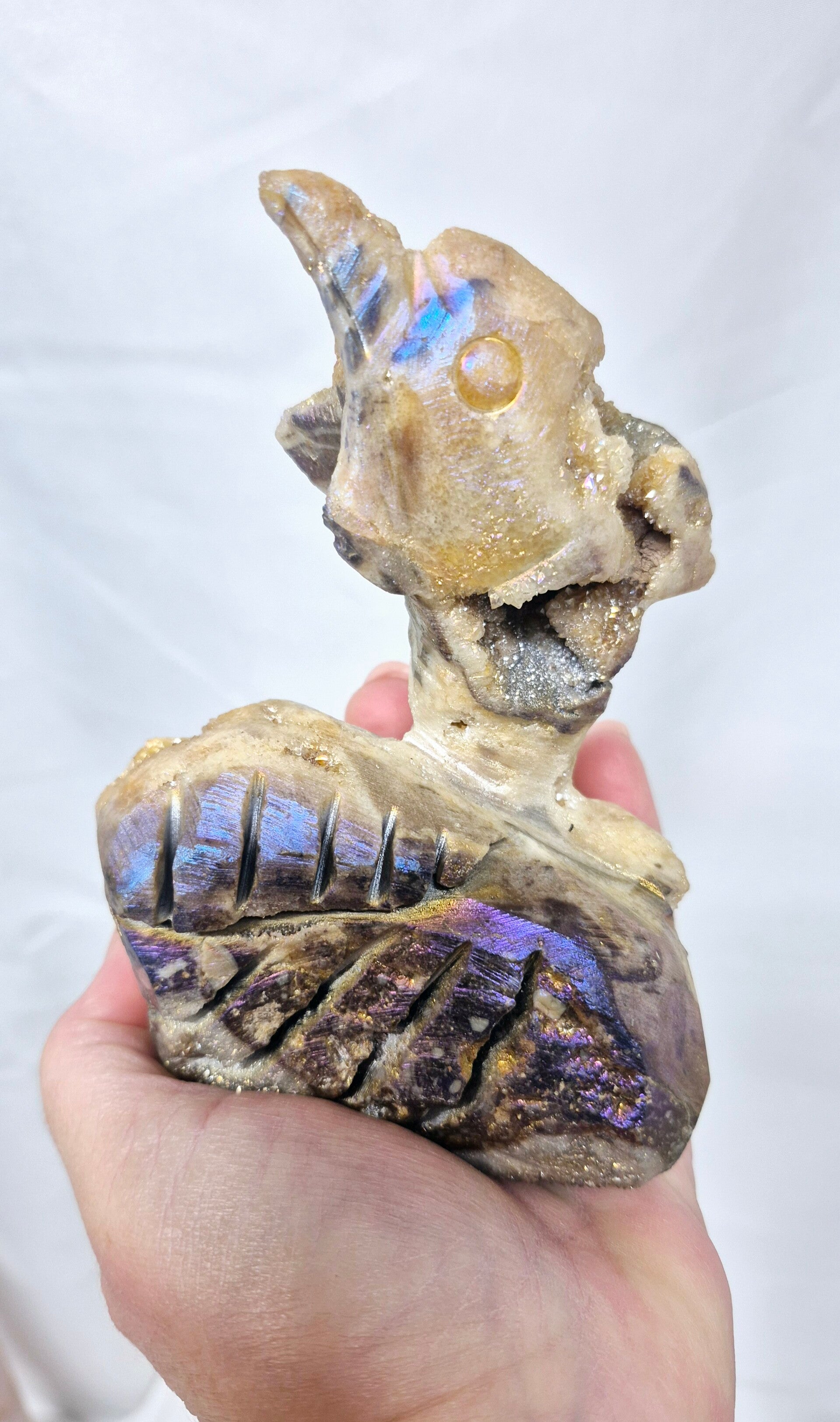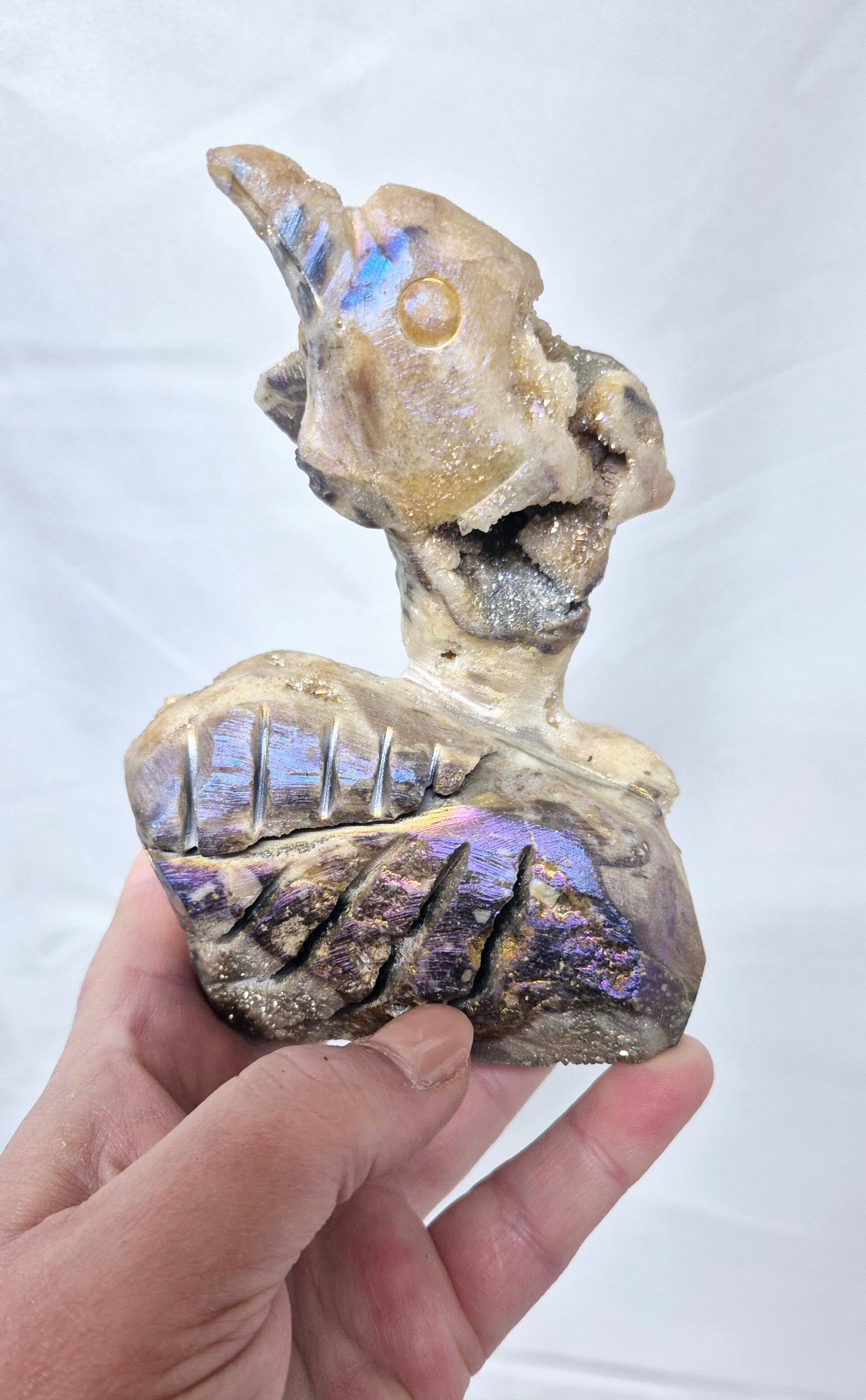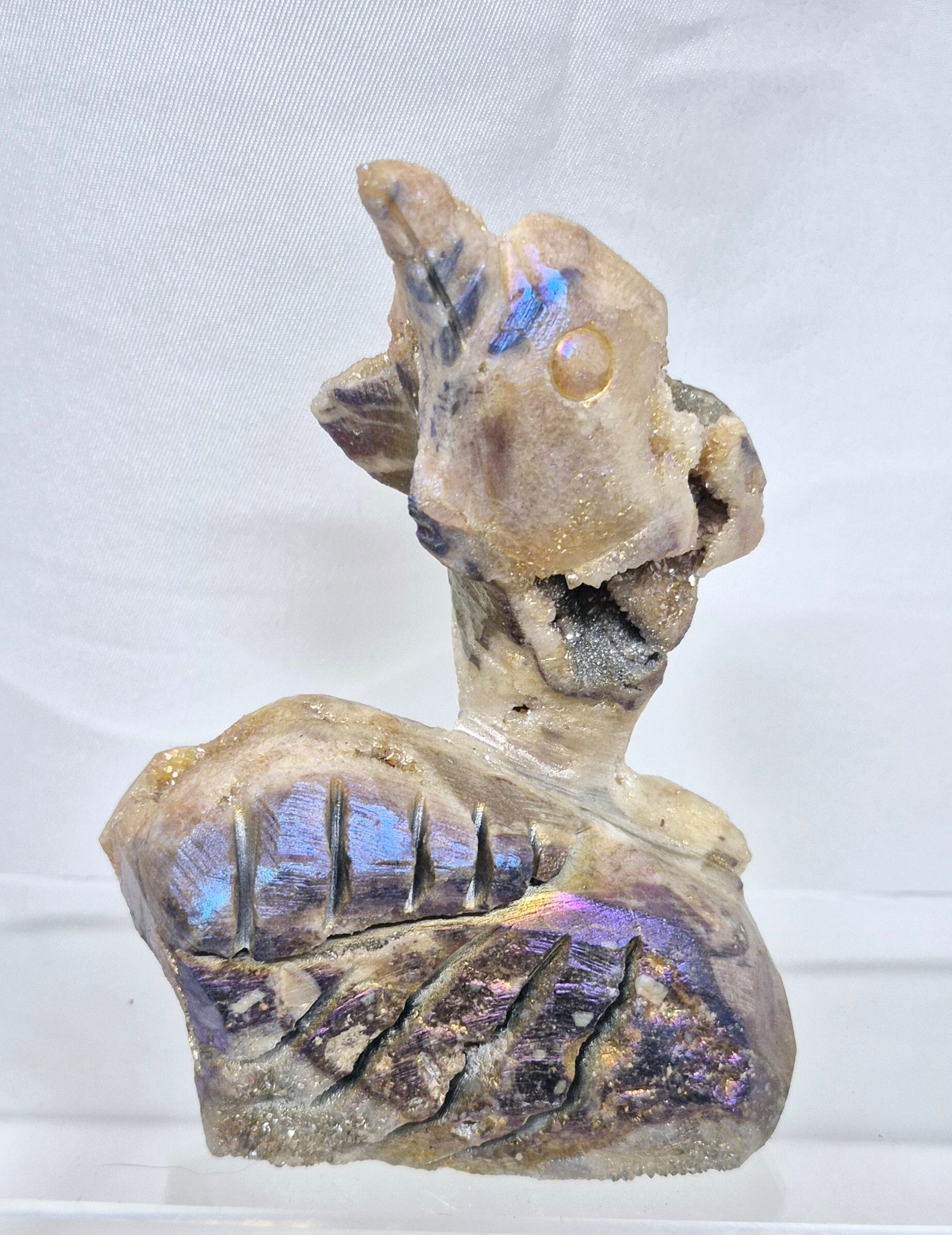 Prachtige grote dolfijn van Sfaleriet met een Titanium laagje.
