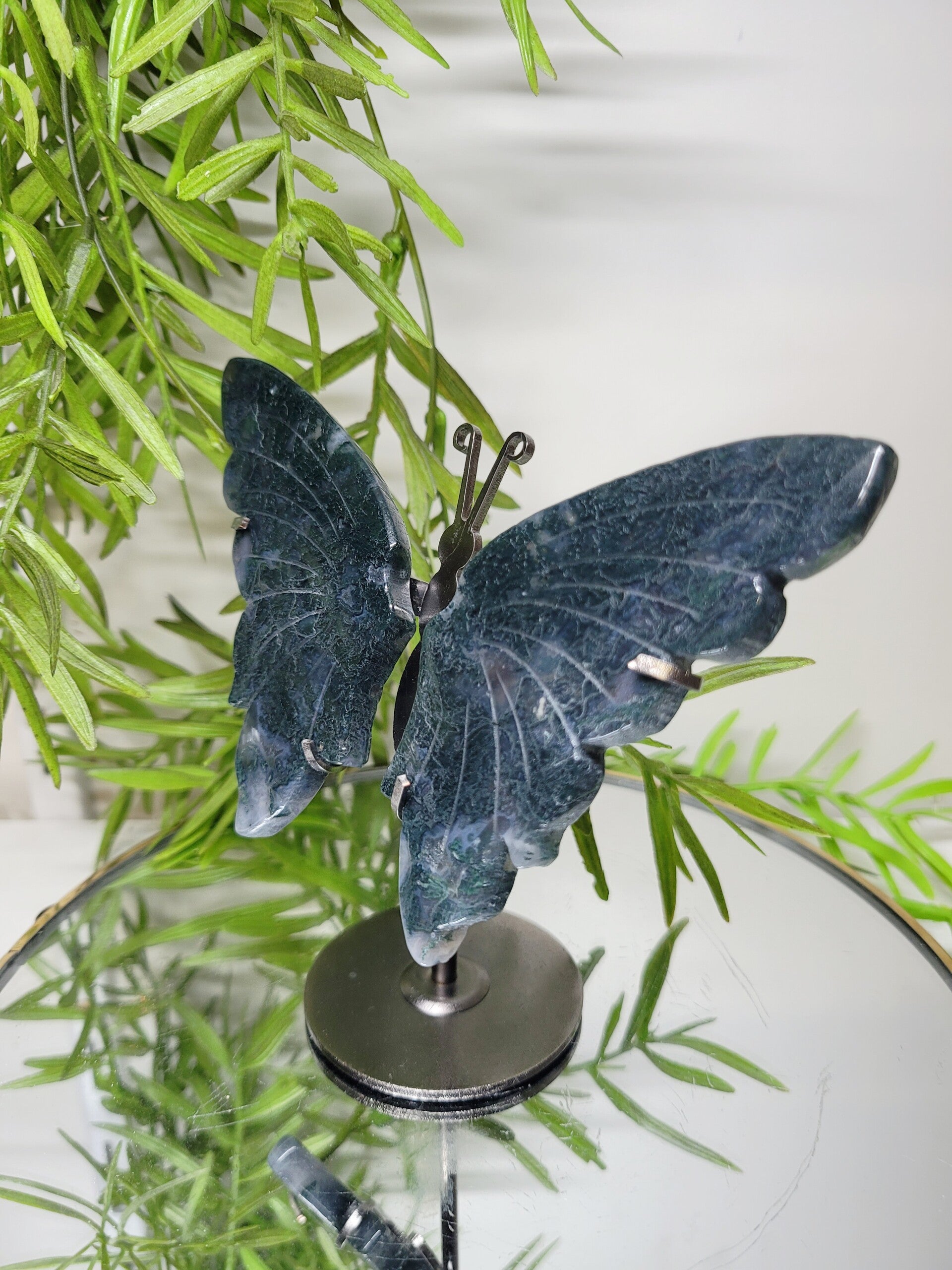 Mosagaat heeft een fijne aardende werking en heeft een fijne zachte energie. Deze steen zet je in het hier en nu en zorgt voor stabiliteit en balans tussen lichaam en geest.