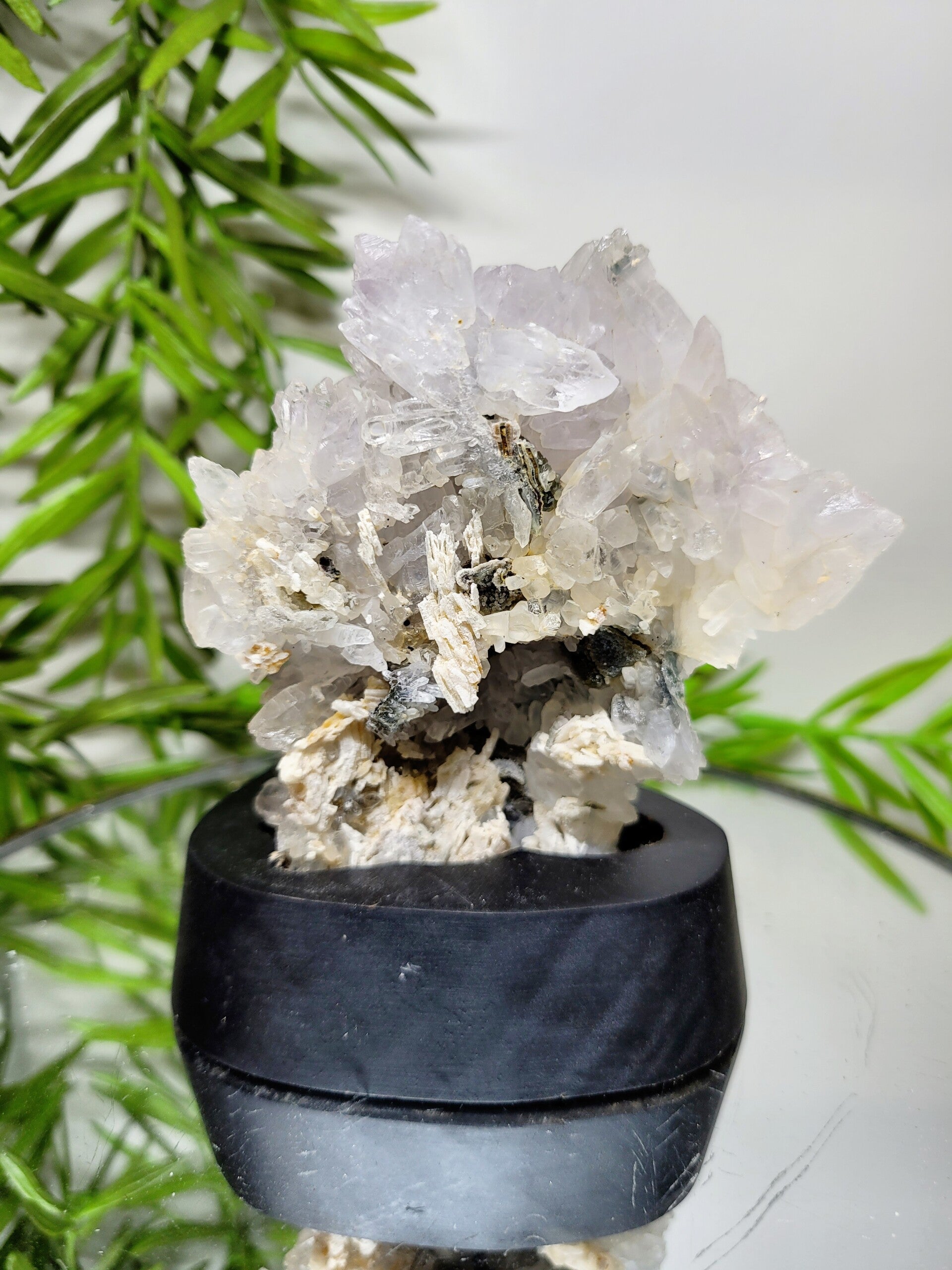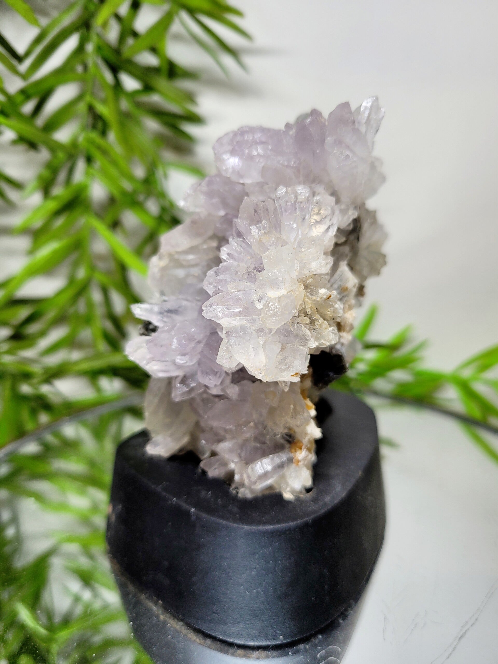 Flower Amethist op een op maat gemaakte houten standaard. Herkomst Brazilië.
