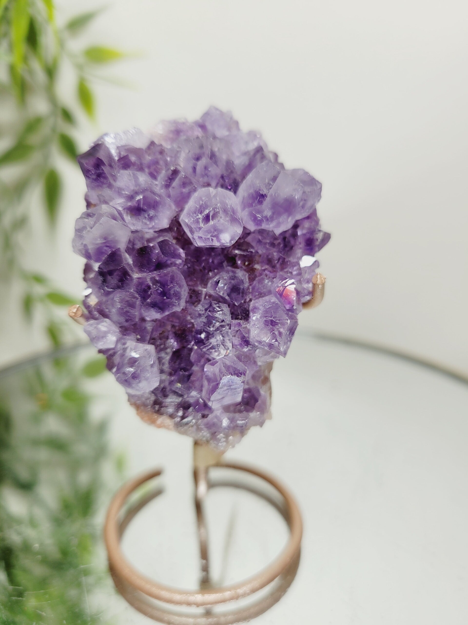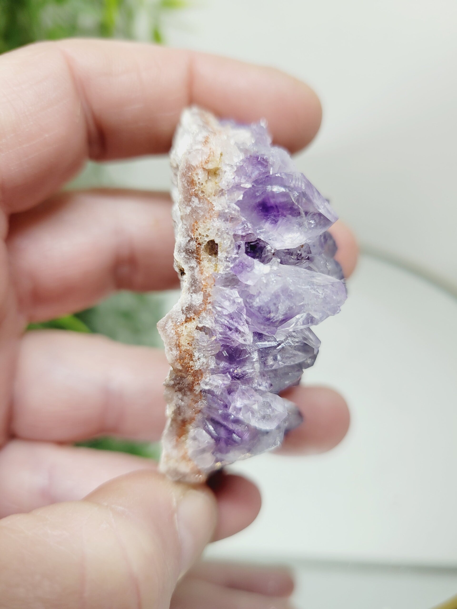 Hoge kwaliteit, uniek en zeldzaam stukje Amethist met Rode tinten Roze Amethist en gekristalliseerd Calciet.