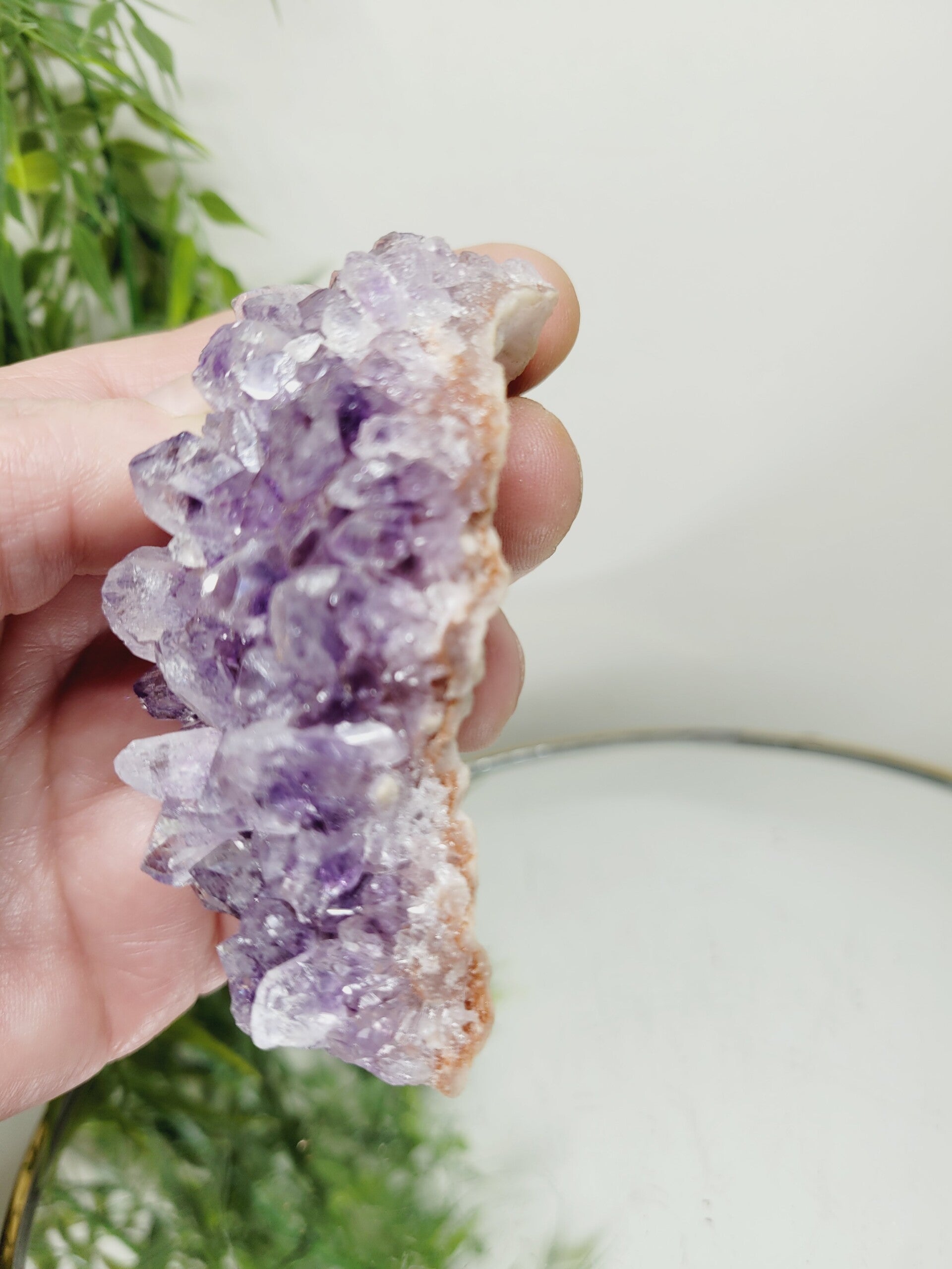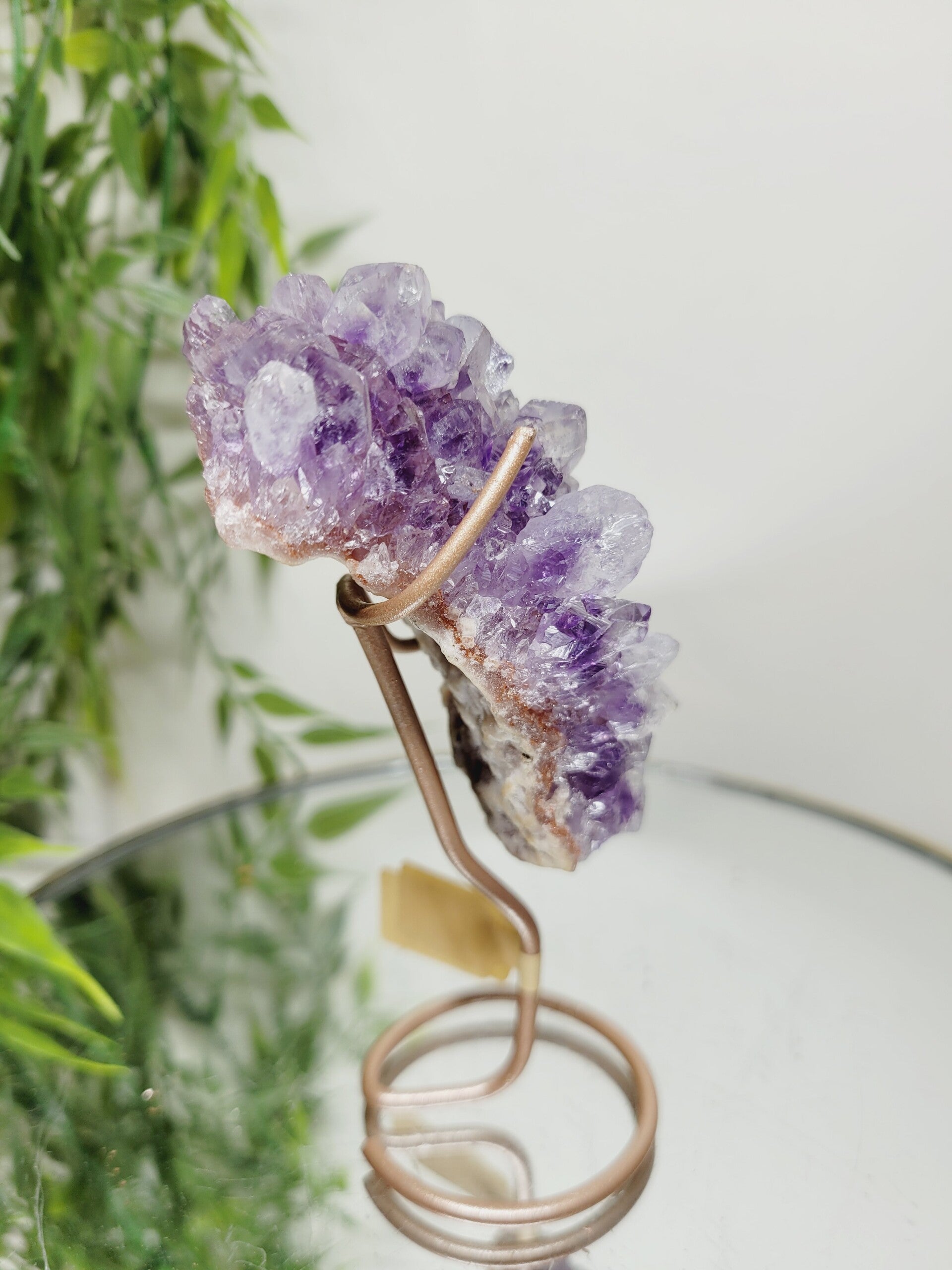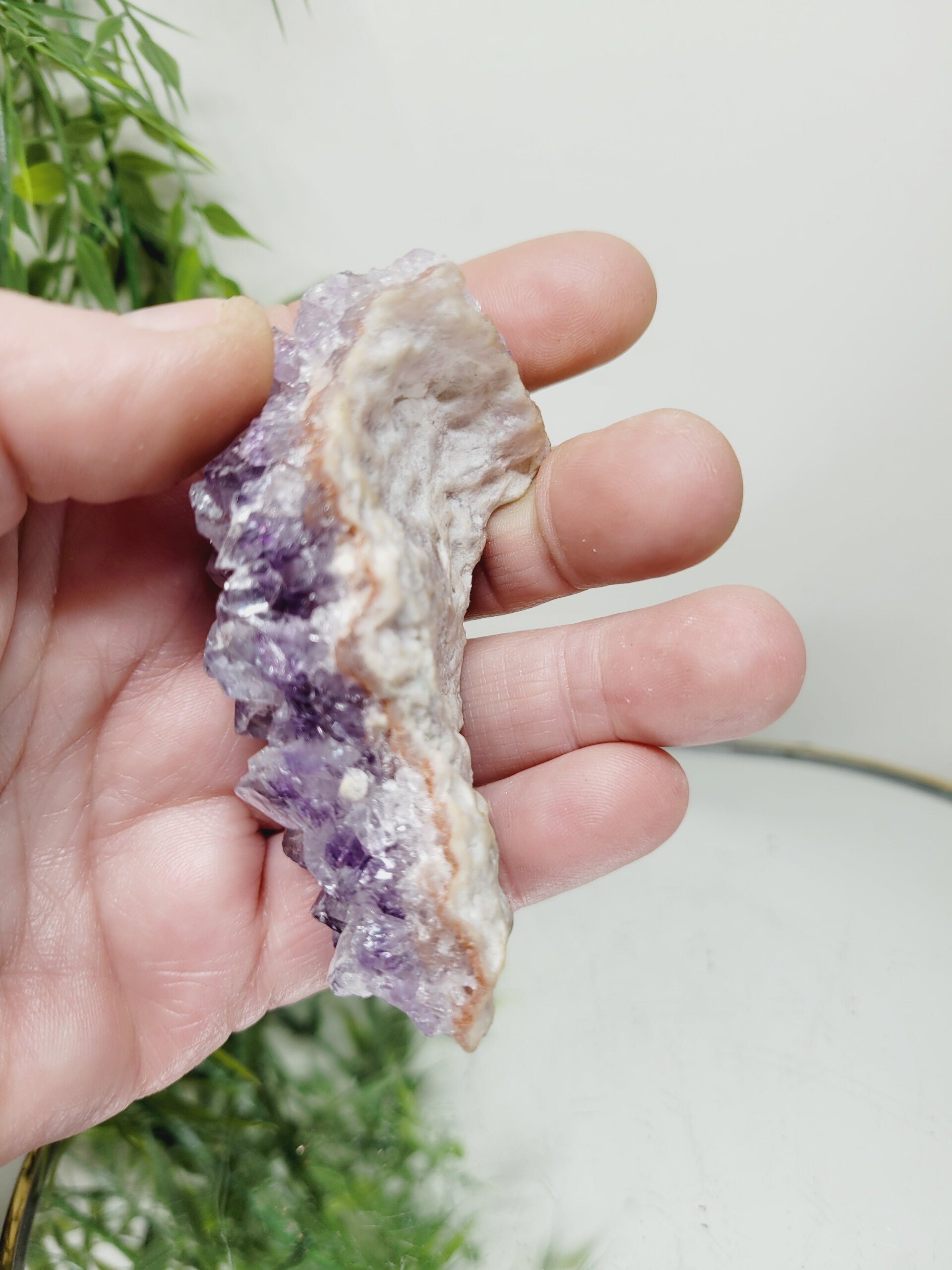 Hoge kwaliteit, uniek en zeldzaam stukje Amethist met Rode tinten Roze Amethist en gekristalliseerd Calciet.