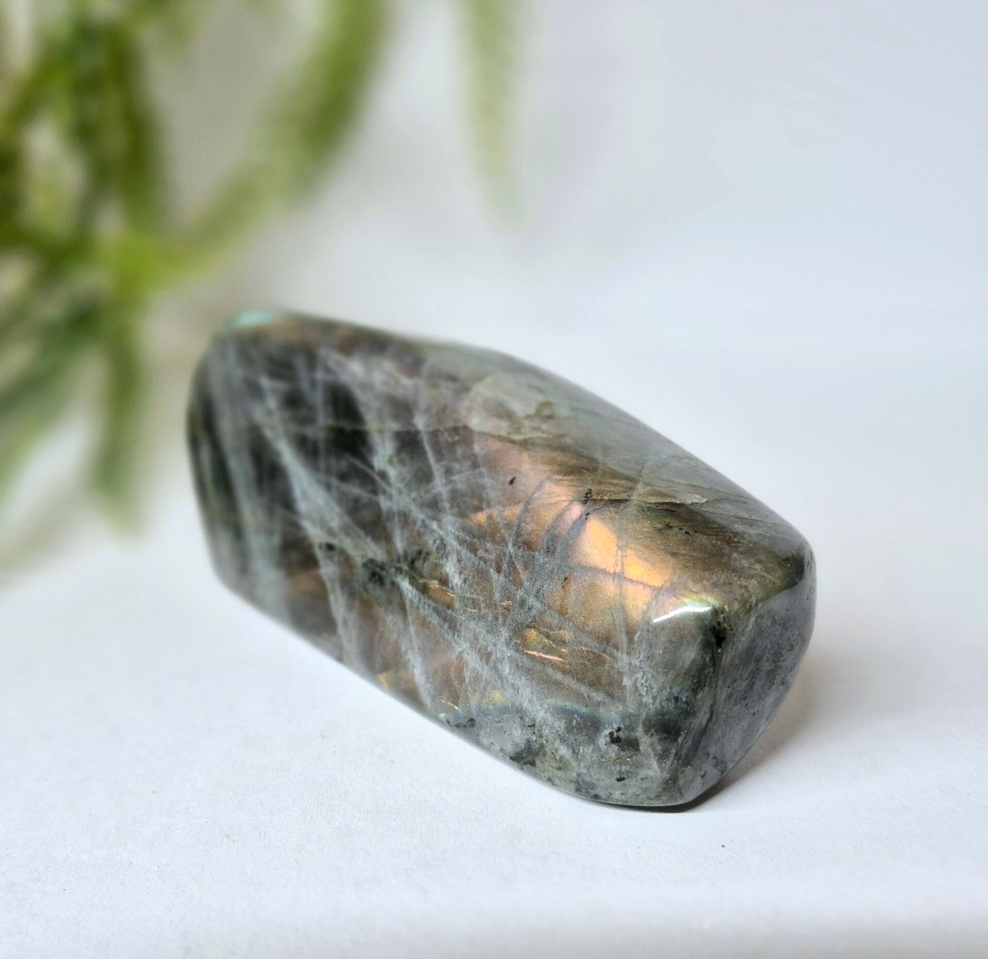 Labradoriet is een sterk beschermende en spirituele steen. Het beschermt het eigen energieveld (aura) tegen negatieve invloeden uit de omgeving en mensen die energie bij je wegnemen.