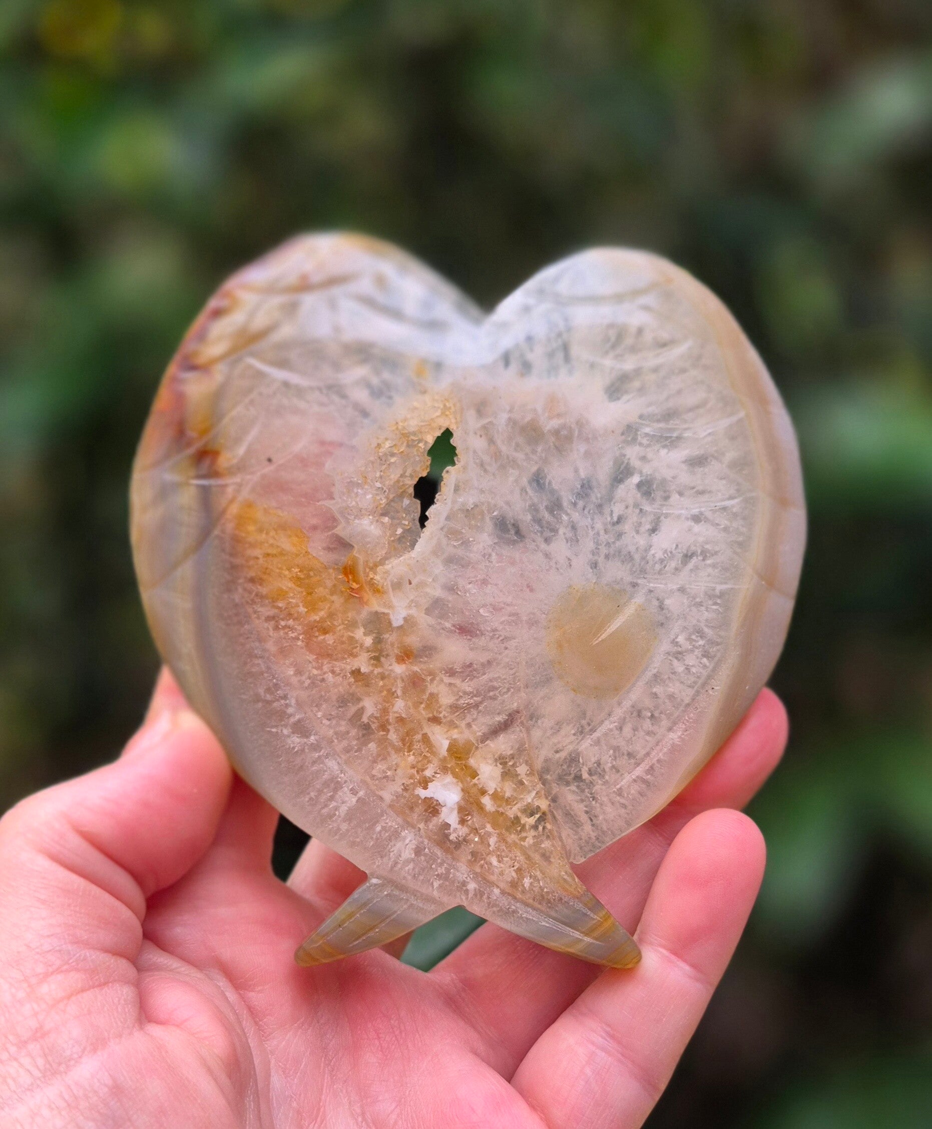 Prachtige Agaat engelen vleugels in de vorm van een hart, op standaard