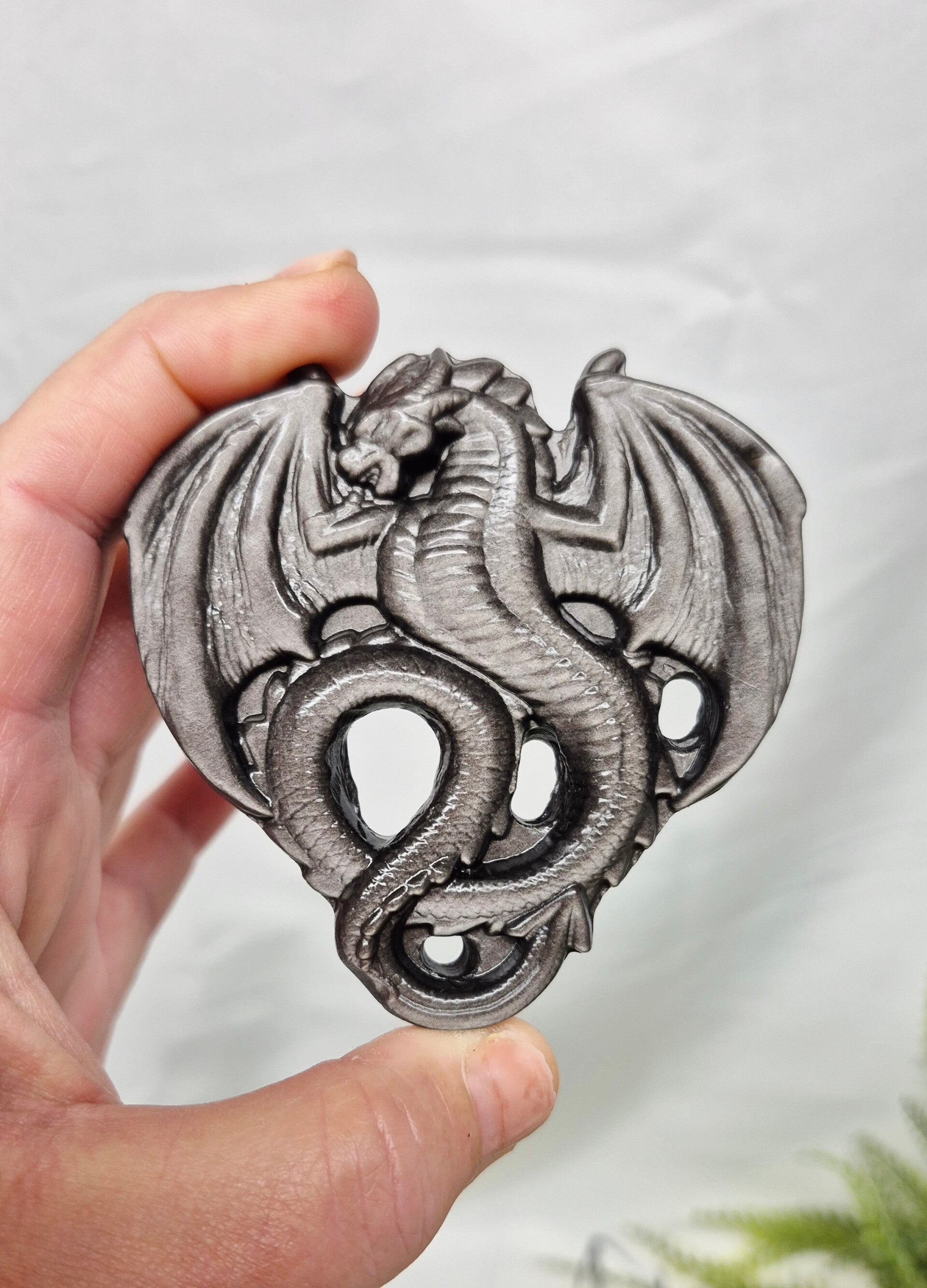 Prachtige draak van Zilver Obsidiaan.