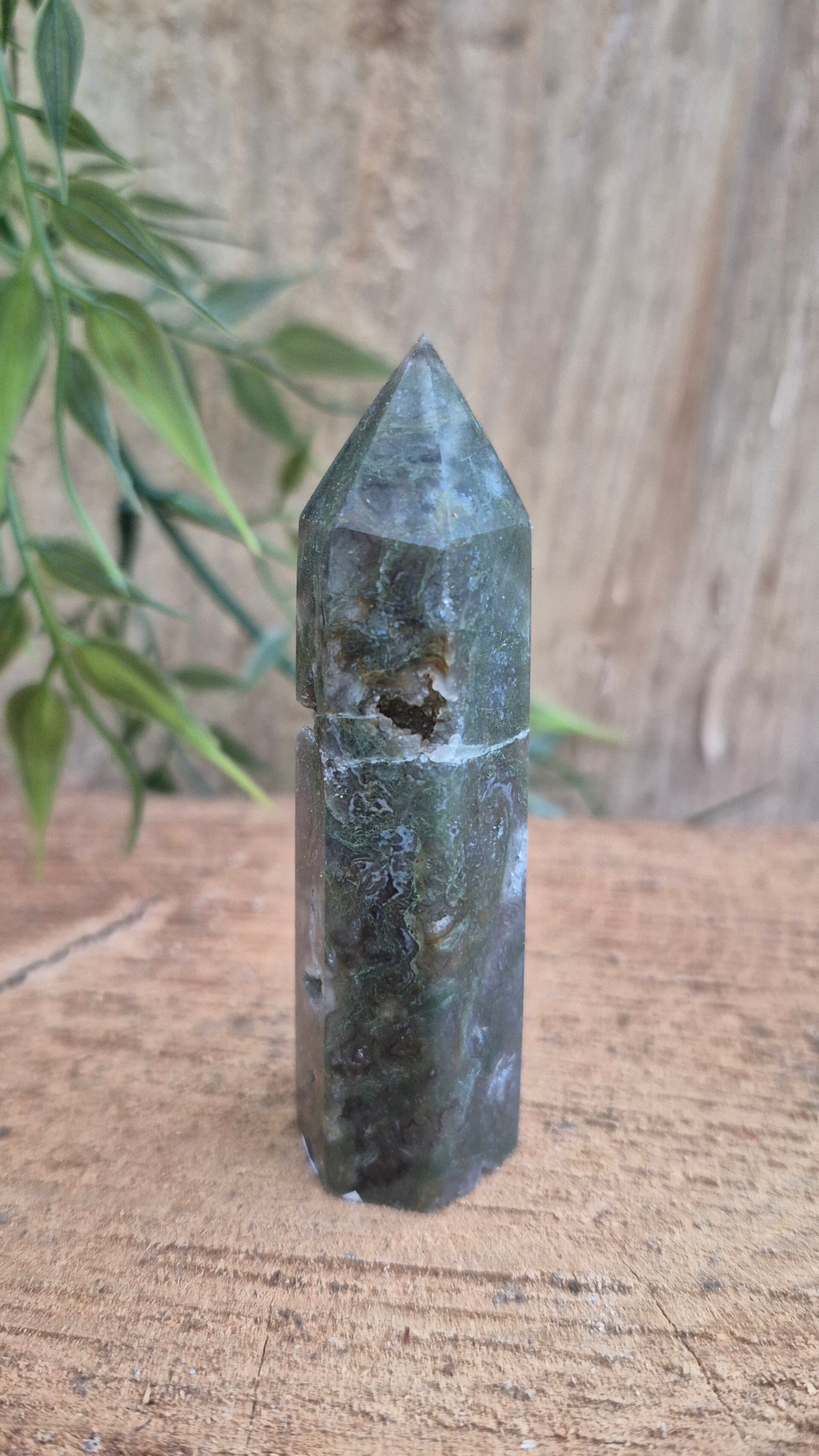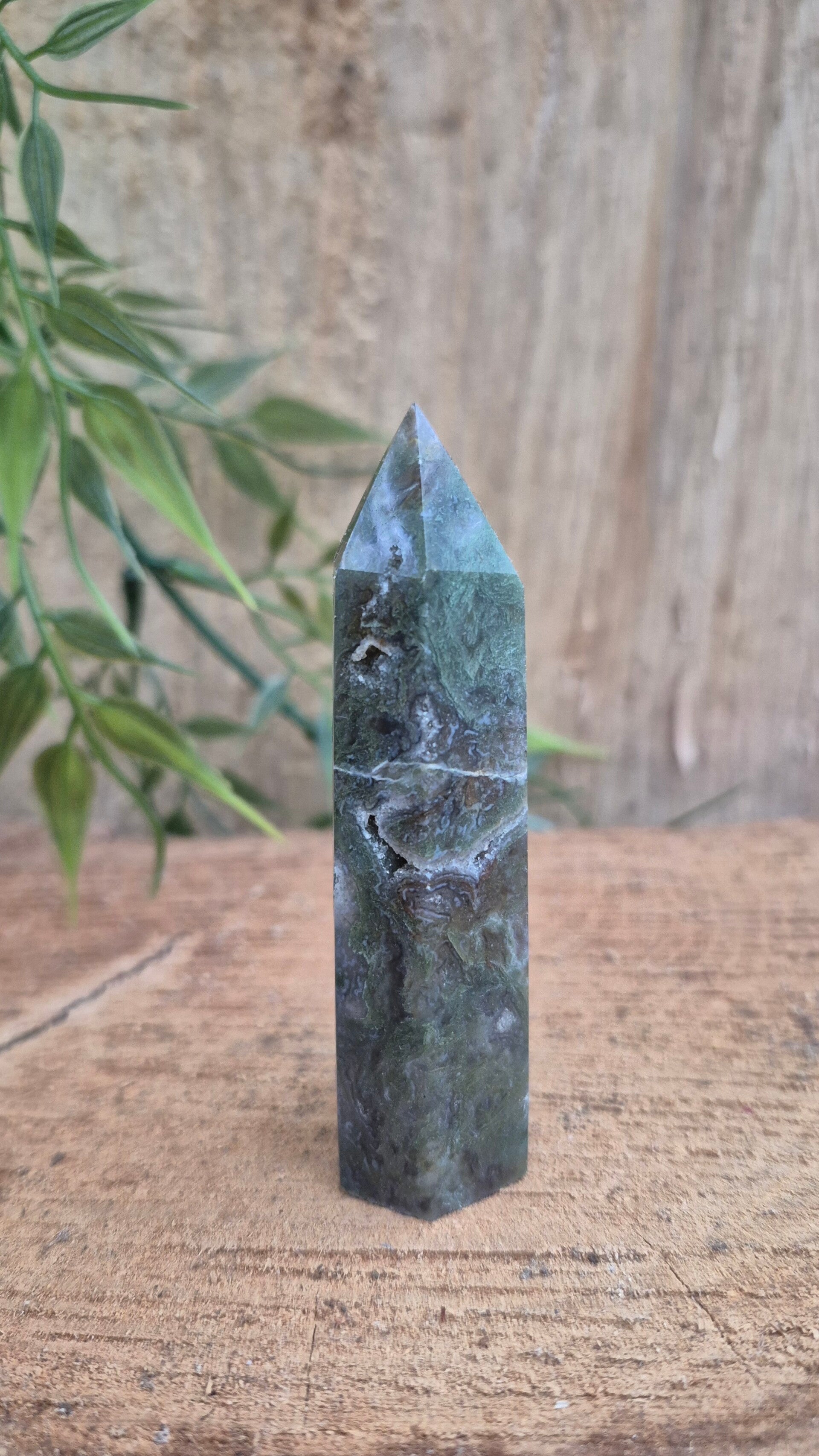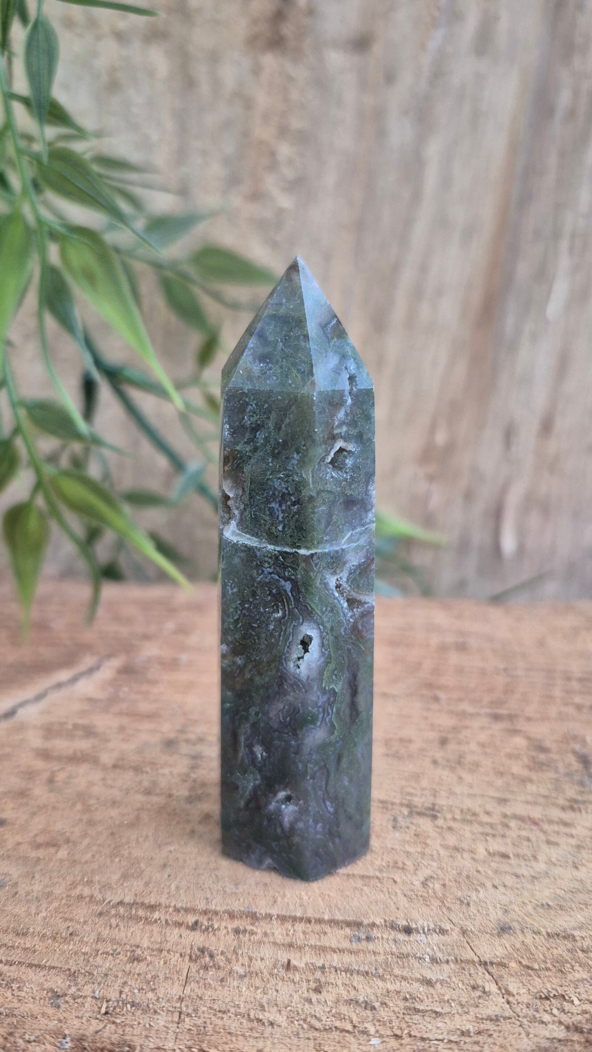 Mosagaat heeft een fijne aardende werking en heeft een fijne zachte energie. Deze steen zet je fijn in het hier en nu en zorgt voor stabiliteit en balans tussen lichaam en geest.