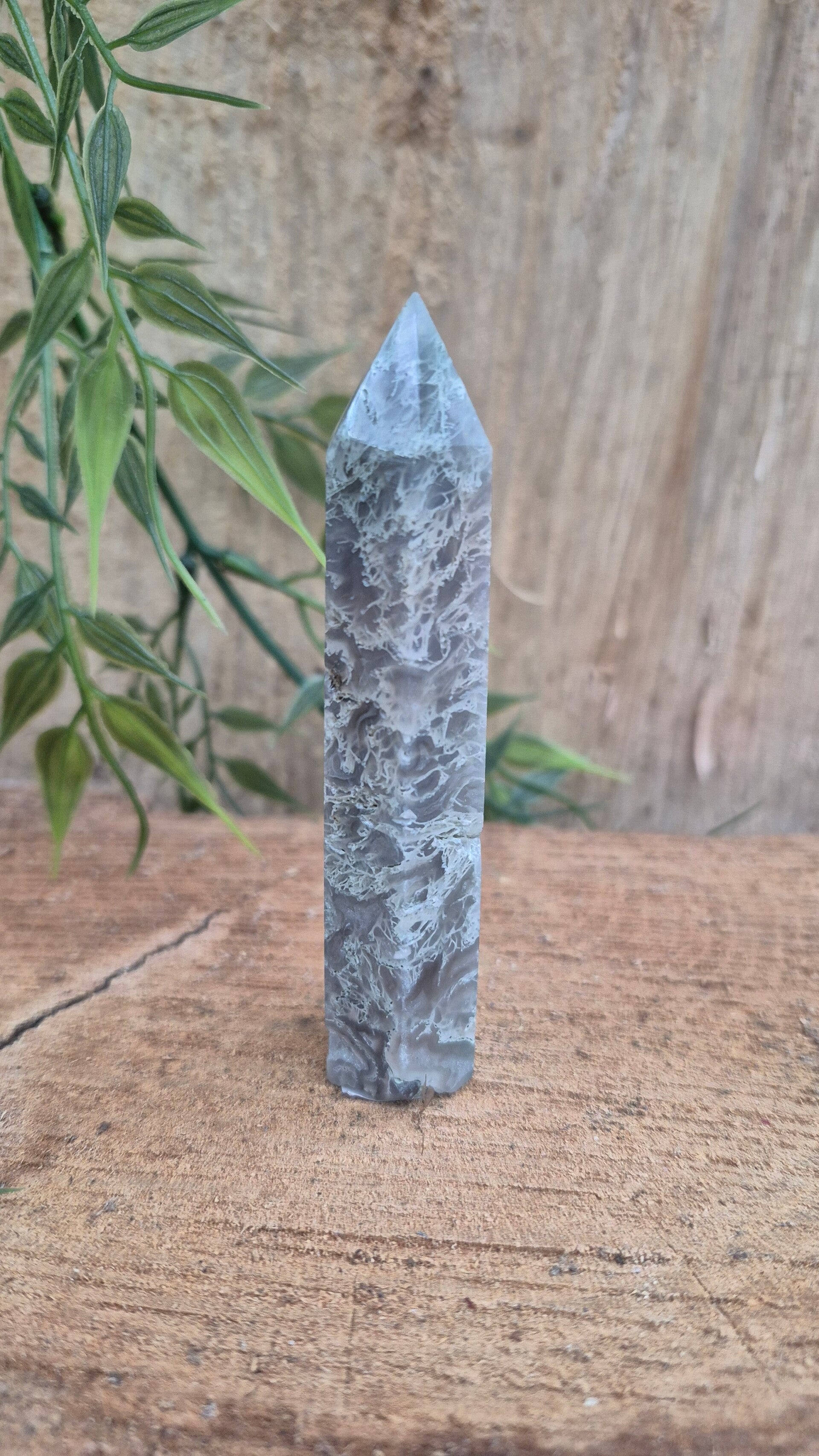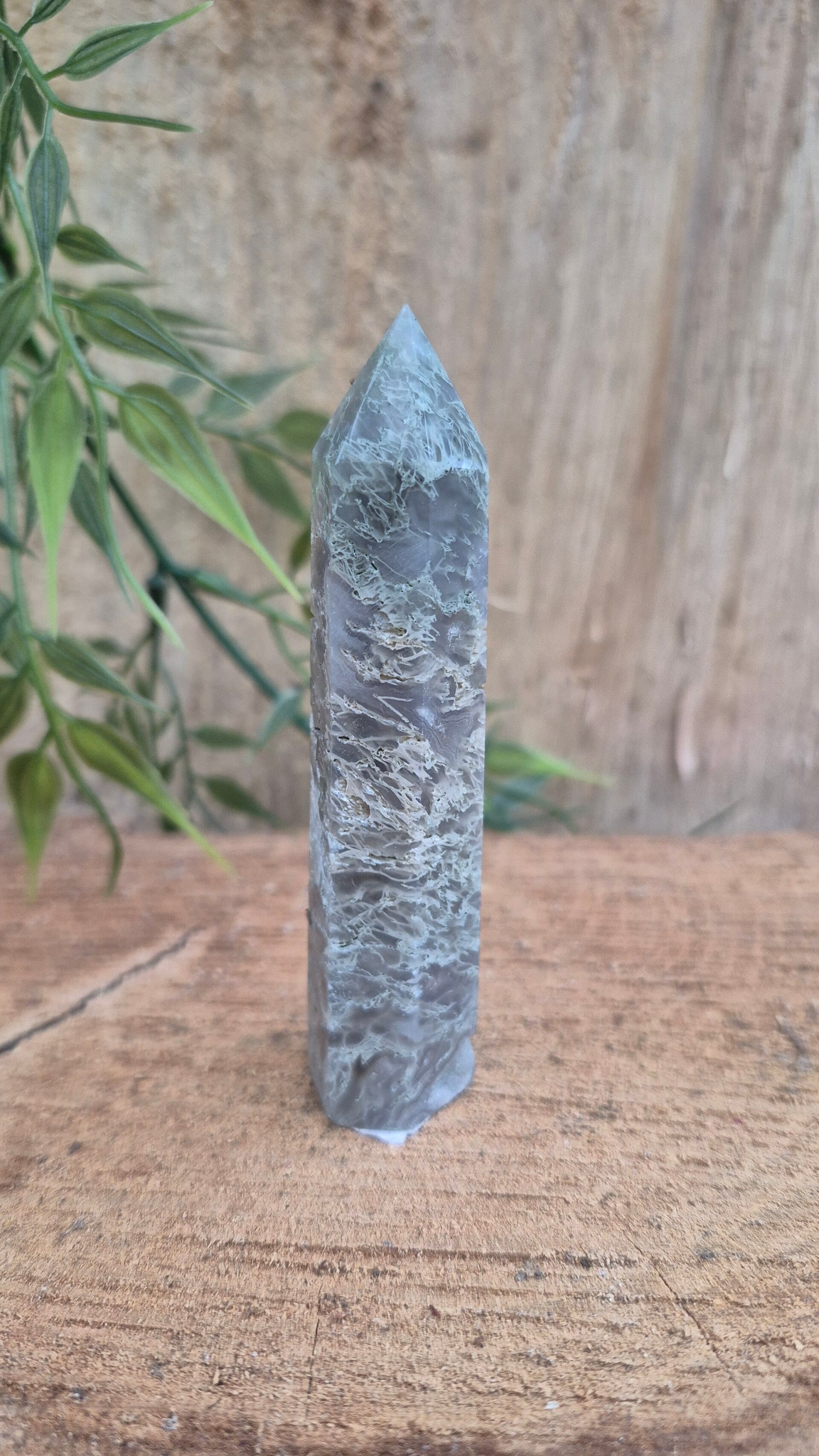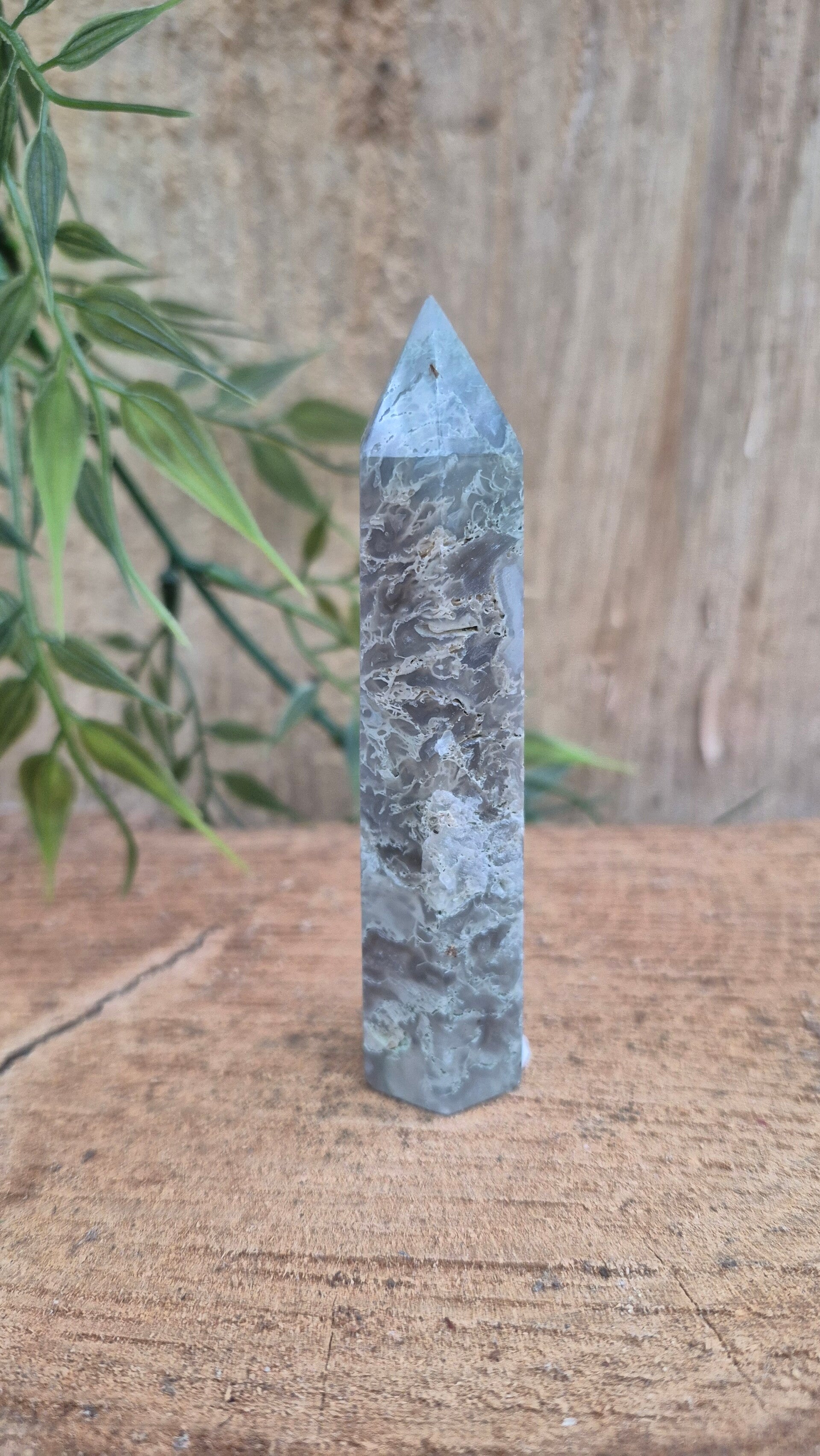 Mosagaat heeft een fijne aardende werking en heeft een fijne zachte energie. Deze steen zet je fijn in het hier en nu en zorgt voor stabiliteit en balans tussen lichaam en geest.
