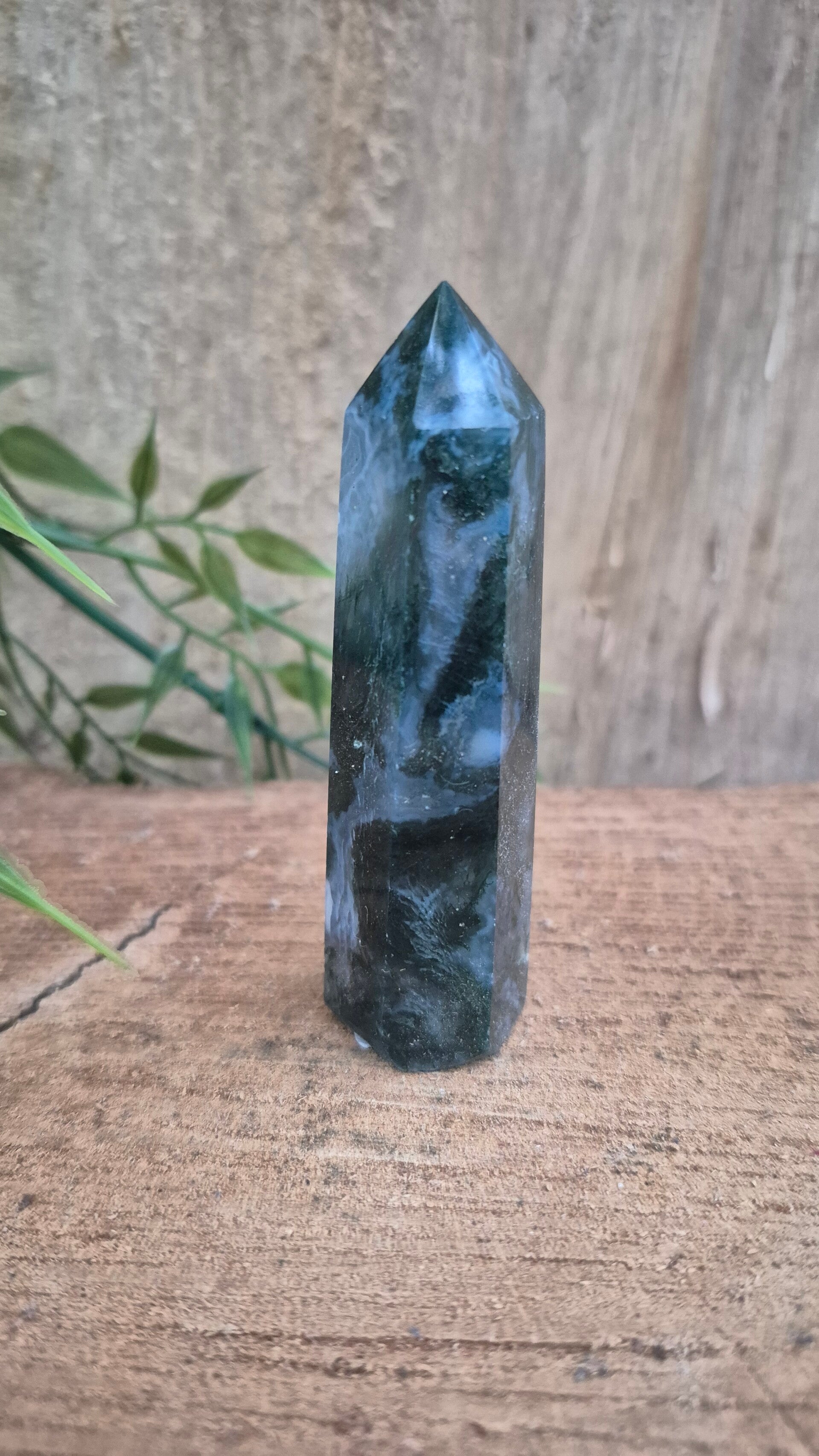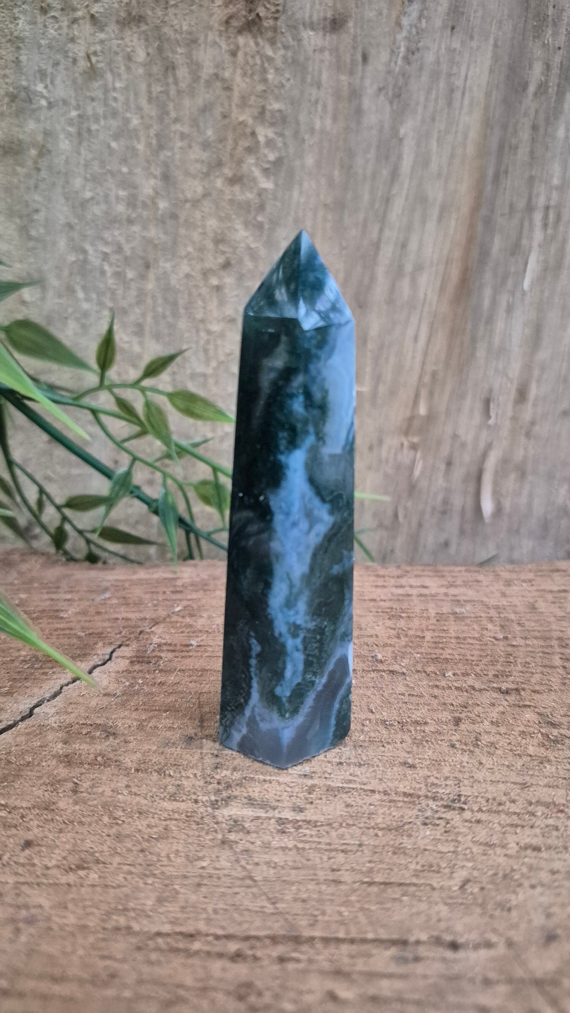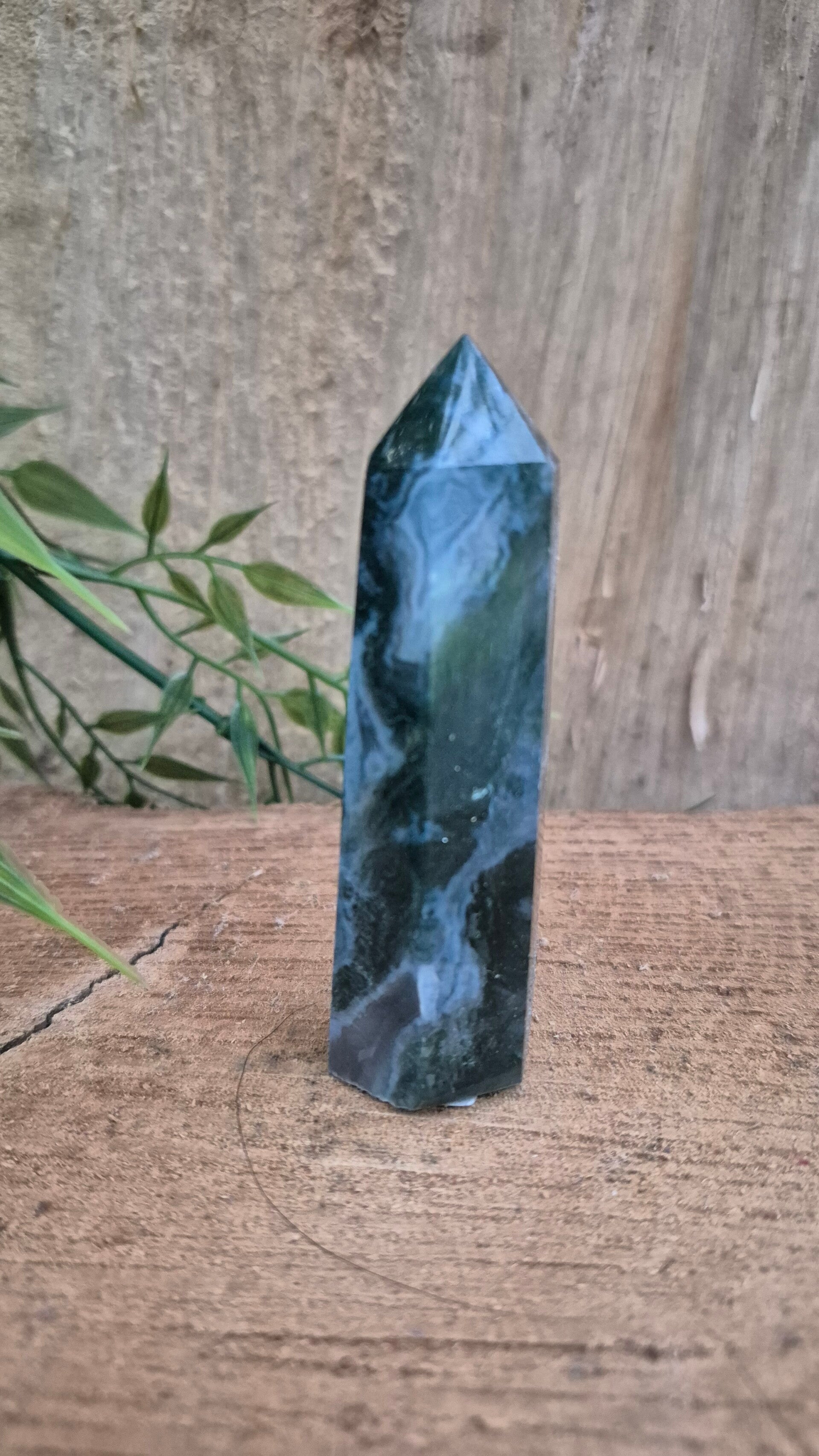 Mosagaat heeft een fijne aardende werking en heeft een fijne zachte energie. Deze steen zet je fijn in het hier en nu en zorgt voor stabiliteit en balans tussen lichaam en geest.