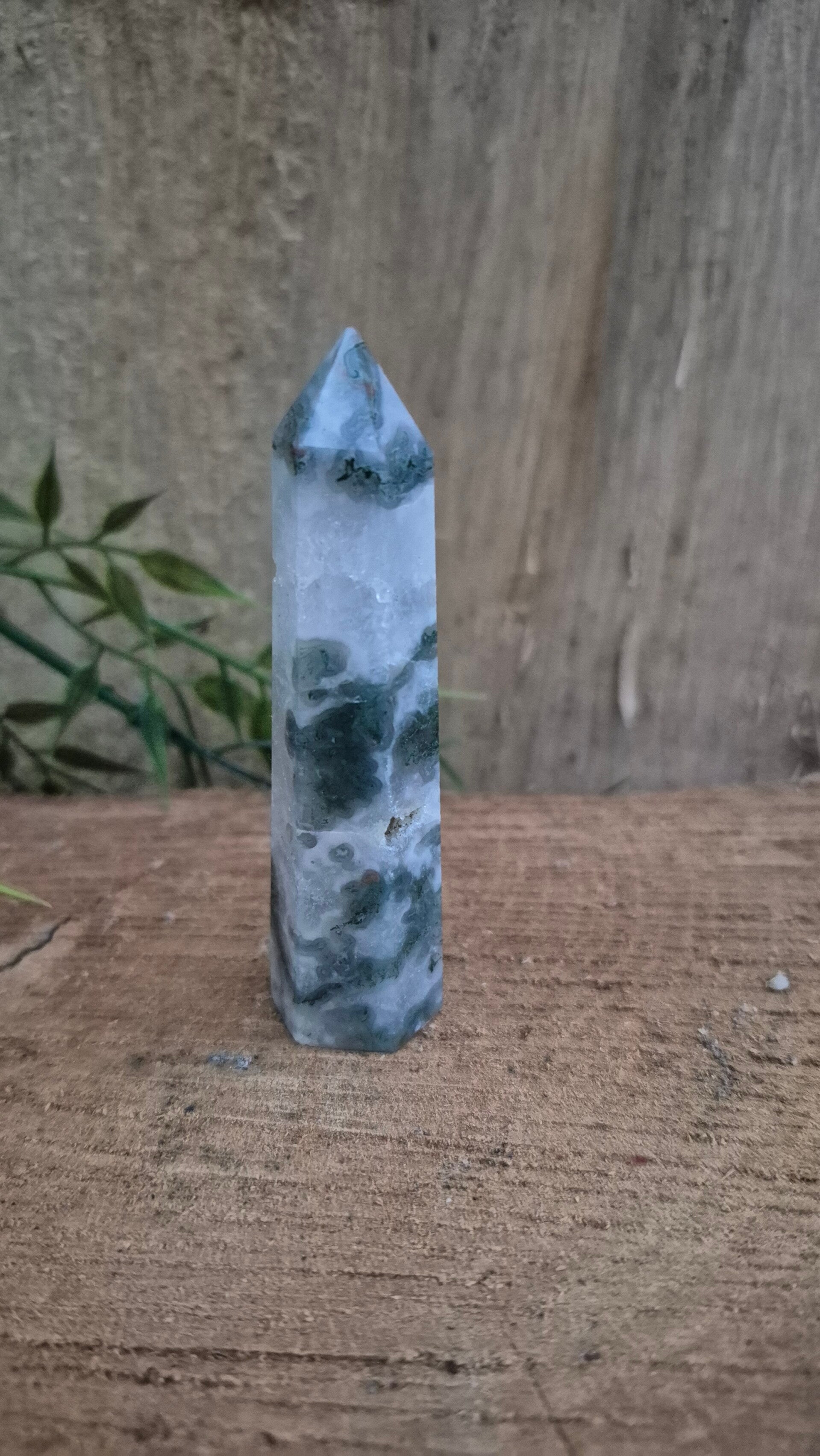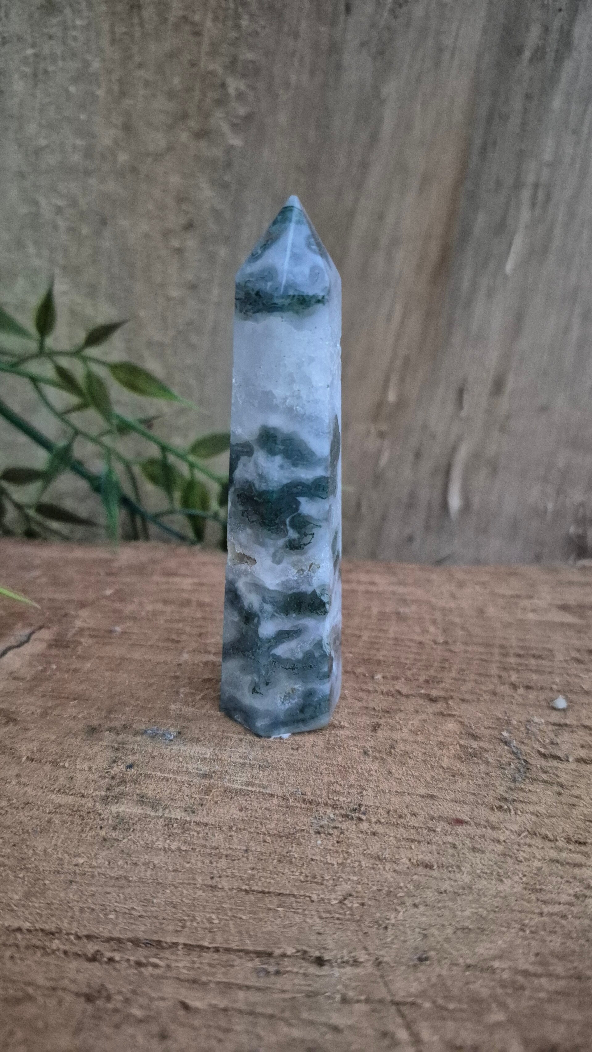 Mosagaat heeft een fijne aardende werking en heeft een fijne zachte energie. Deze steen zet je fijn in het hier en nu en zorgt voor stabiliteit en balans tussen lichaam en geest.